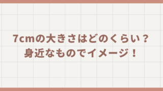 気になること 7cmの大きさはどのくらい?身近なものや指でイメージできる例を紹介 7cmの大きさは、消しゴムの長辺や紙幣の縦の長さとほぼ同じで、人差し指1本分くらいの長さです。おにぎりや小さめのパン、マグカップの直径も約7cmで、生活のあちこちに登場します。7cmは70mmに換算でき、インチではおよそ2.75インチになり... 気になること