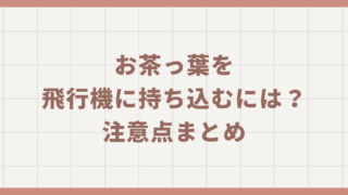 気になること お茶っ葉を飛行機に持ち込むには?国内線と国際線での注意点まとめ お茶っ葉を飛行機に持ち込むとき、国内線では乾燥茶葉やティーバッグなどの加工品は制限なく持ち込めます。国際線では国ごとに規制が違い、日本を含む多くの国では乾燥茶葉は検疫不要ですが、生茶葉や枝付きのもの、土が付いているものは申告や持ち込み禁止の... 気になること