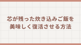 食べ物 芯が残った炊き込みご飯を美味しく復活させる方法|再炊飯からリメイクまで紹介 芯が残った炊き込みご飯は、再炊飯で少し水を足して蒸らすと食べやすい仕上がりになります。電子レンジならラップと少量の水で短時間の加熱ができ、硬い部分だけを取り分けて直すことも可能です。雑炊やチャーハン、リゾット風にリメイクすれば新しい一品とし... 食べ物