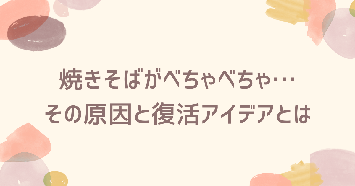 焼きそばがべちゃっとしてしまうと、見た目も食感もいまひとつですよね。